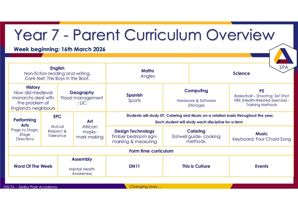 KS3 Curriculum Overview (w/c 16/03/2026)